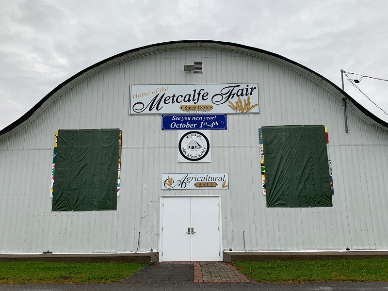 The Metcalfe Fair has reached out to its members, and the community at large, to help create two “quilts”, to be displayed on our iconic Agricultural Hall. Several artists have been busy creating and painting their blocks, and they have now been pieced together to make the pieces of art that were unveiled on Saturday, October 3rd. The entire unveiling ceremony can be seen in the video below.